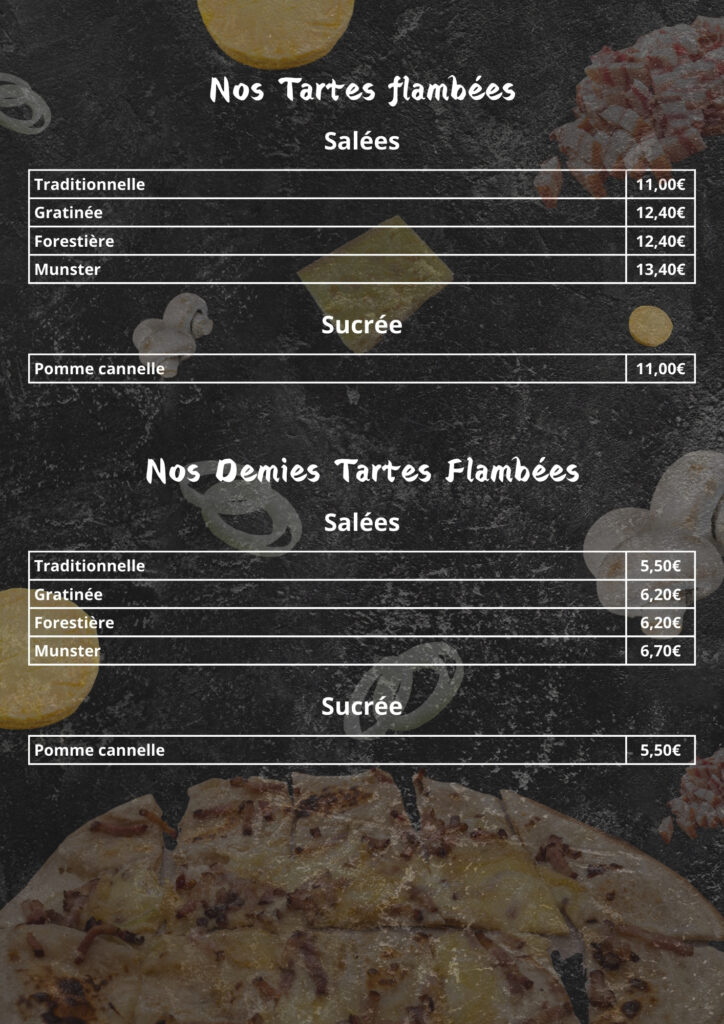 Notre équipe est composé d’un alsacien! Donc c’est pour lui aussi un plaisir que de faire connaitre la vraie tarte flambées avec ses différents variantes comme la forestière et la gratinée.